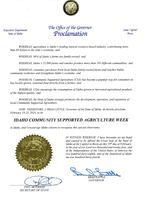 - Governor’s Proclamation: Celebrate the official recognition of Idaho CSA Week.