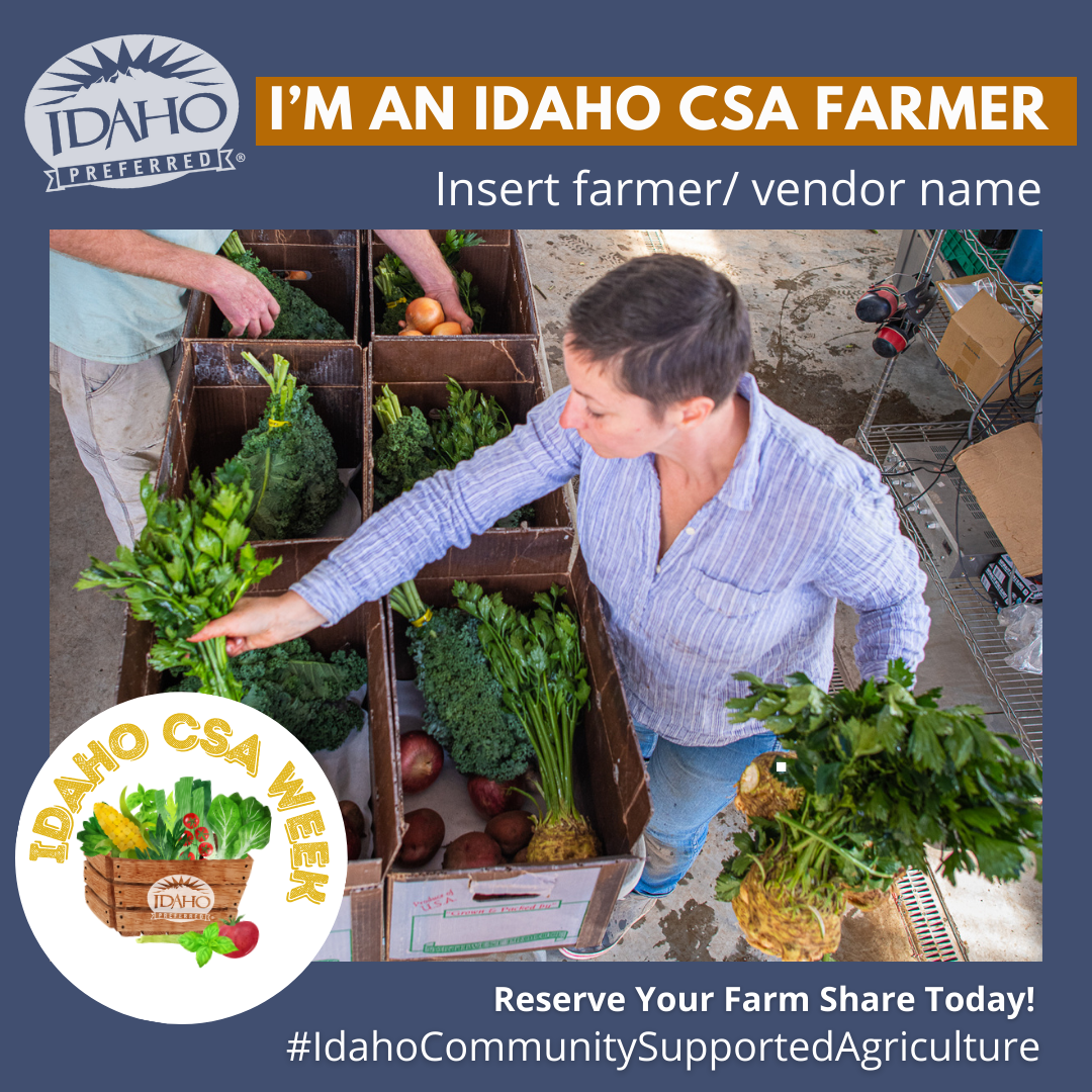 Maximize your visibility during CSA Week by tagging @idahopreferred in your social media posts and stories. This makes it easy for us to reshare your content and amplify your message.
