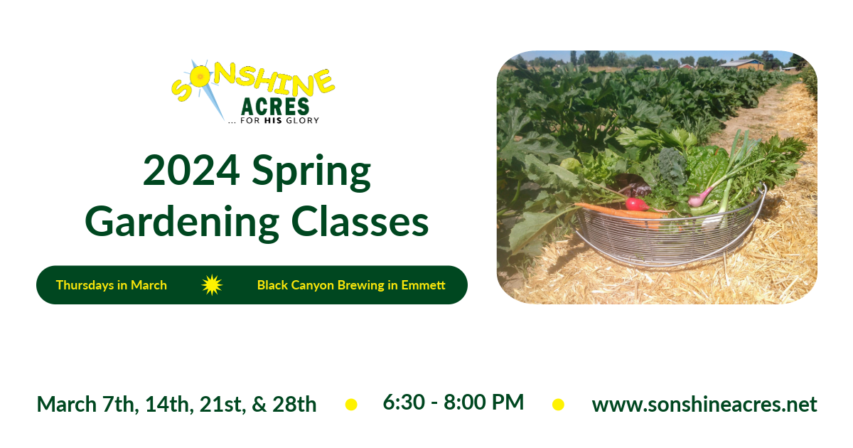If you are new to gardening, this class from Sonshine Acres is for you! The very most basic items will be covered to get you...