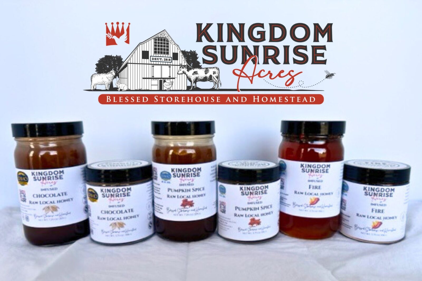 Kingdom Sunrise Acres is a family-operated homesteading business dedicated to providing locally produced and curated products that add value to the Treasure Valley community. Founded in 2022 by Joe and Stephanie at their small homestead in Nampa, Idaho, the company has quickly grown to offer a diverse selection of unique goods.