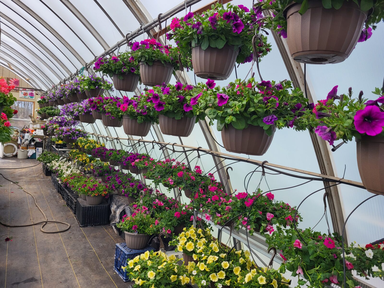 During March the Glory B Greenhouse transforms into a colorful array of hanging baskets and bedding plants. Spyglass Gardens’s Custom Grow Program has also grown over the last 24 years. Hanging baskets from 12 inches to 20 inches can be found. The program offers home delivery and vessel enhancements. Though the farm is not open daily, it is open for its “Annual Tour de Farm” Mother’s Day Weekend. Unique vessels and hanging baskets are available along with bedding plants, succulents, and herbs. Customers are also welcome to join the free guided tours.